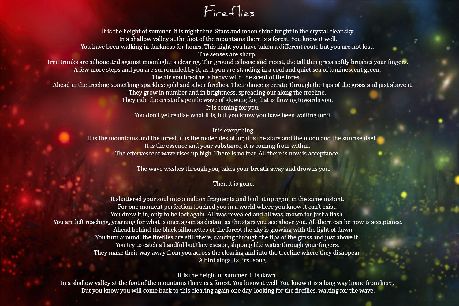 Art Portfolio These include logo’s, background pages and designs around texts and prose. Graphic design around prose, in this case a piece of text called Fireflies. Art from art: edited photo of Ludovico Einaudi's Elements album cover artwork. Art from art: edited screencap from Ludovico Einaudi's Divenire EPK.